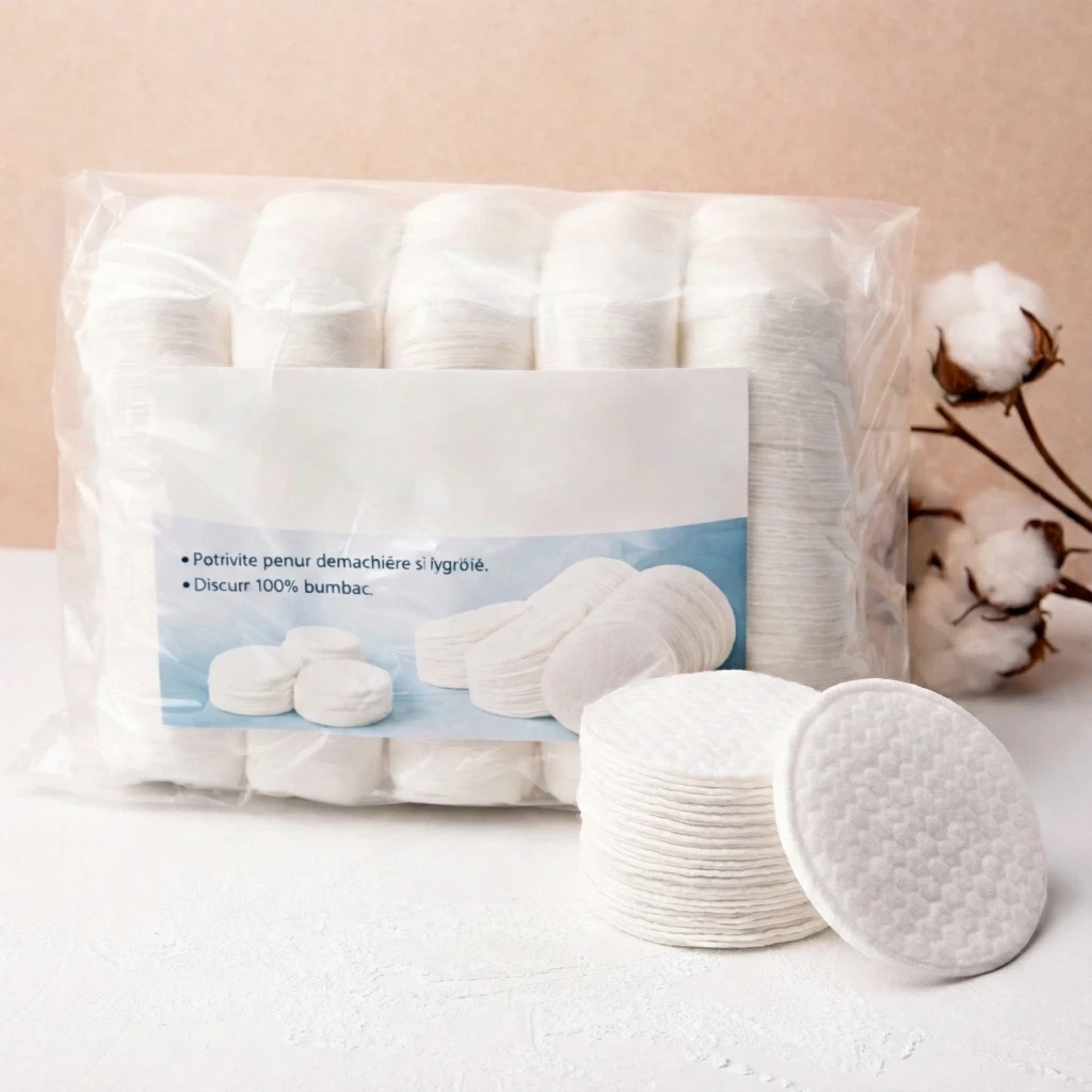 Discuri de vată – 1200 bucăți / ambalaj Discuri cosmetice din bumbac, ideale pentru demachiere, dezinfectare locală și proceduri cosmetice sau medicale.