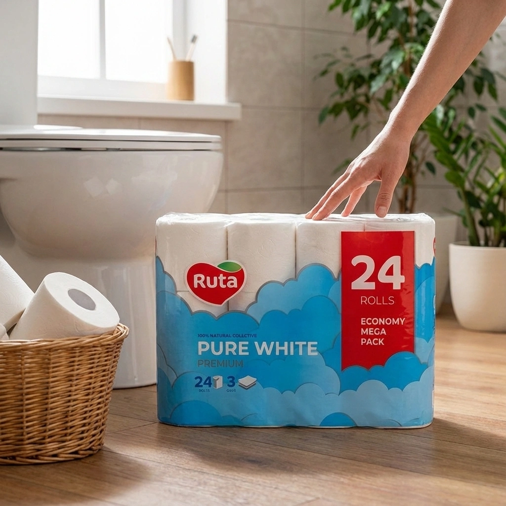 Hârtie igienică rolă standard 18 m, 3 straturi, perforată, 24 role/pachet Varianta la 24 de role este adresată familiilor numeroase, birourilor sau unităților de cazare, oferind un stoc convenabil pe termen mediu. Cele 3 straturi garantează confort sporit, iar perforațiile permit dozarea corectă. Ambalajul mare reduce frecvența achizițiilor și costurile logistice. Se pretează atât pentru consum casnic, cât și pentru pensiuni, hosteluri sau birouri ce preferă un produs mai confortabil decât gama economică.