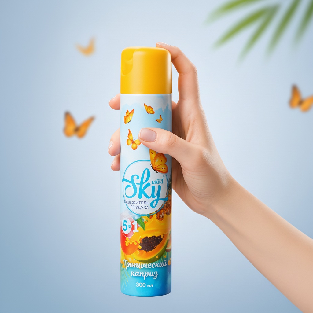 Odorizant de cameră SKY Wind 300 ml – parfum tropical, formulă 5‑în‑1 pentru prospețime rapidă.
