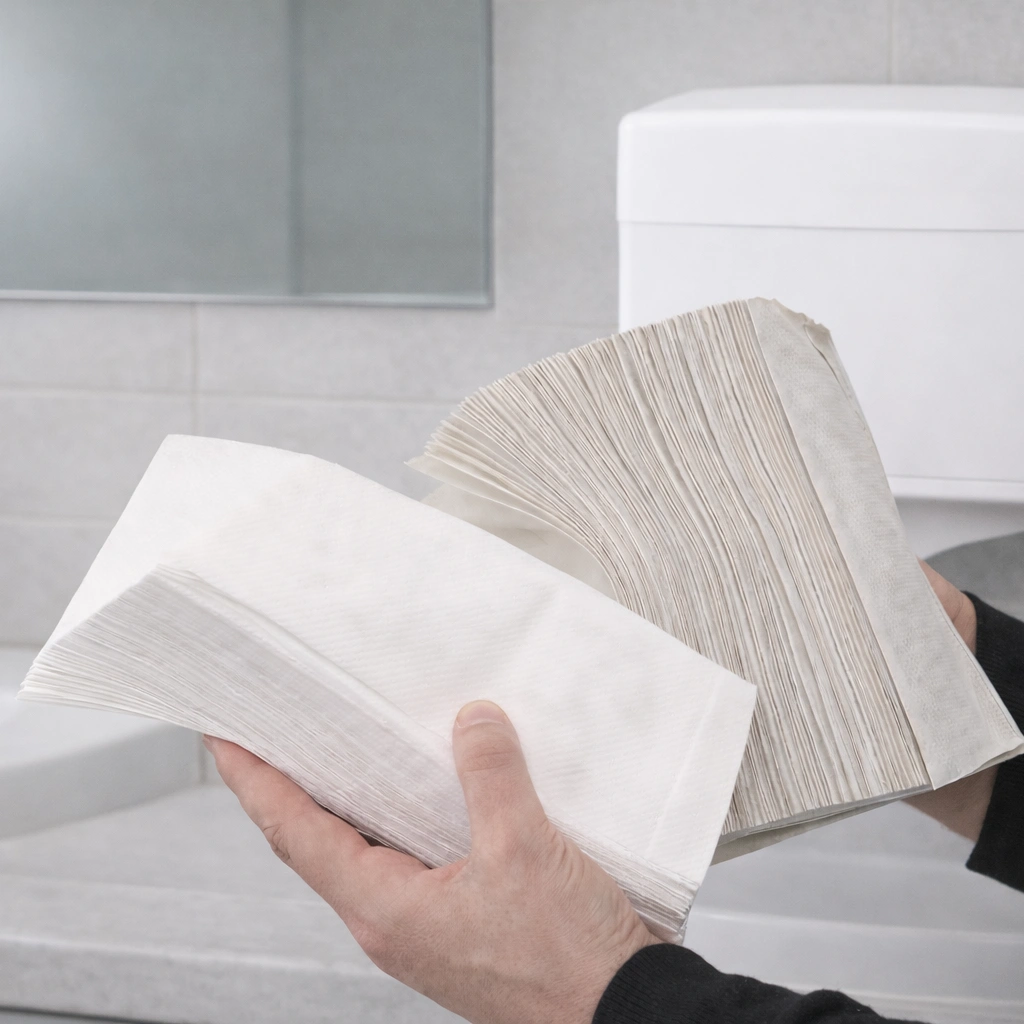 : foaie mai mare (23×25 cm), 100% celuloză, dublu strat – exact tipologia de prosop folosită în toaletele de hotel, restaurante sau clinici private. O suprafață mai mare înseamnă că utilizatorul are nevoie de mai puține foi pentru aceeași uscare.