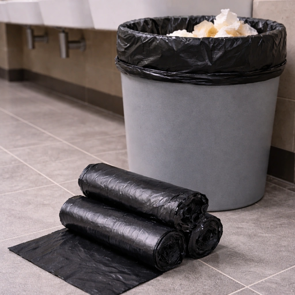 sau coșuri de baie de capacitate medie-mare. Culoarea neagră ajută la mascarea conținutului, ceea ce este important în spații vizibile pentru clienți sau pacienți (de ex. în hoteluri, clinici, săli de așteptare).